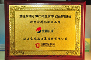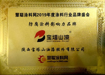 2020年7月,寶塔山漆榮獲第十六屆2020年度涂料行業(yè)影響力品牌頒獎(jiǎng)盛典活動(dòng)中榮獲”防腐涂料影響力品牌 -