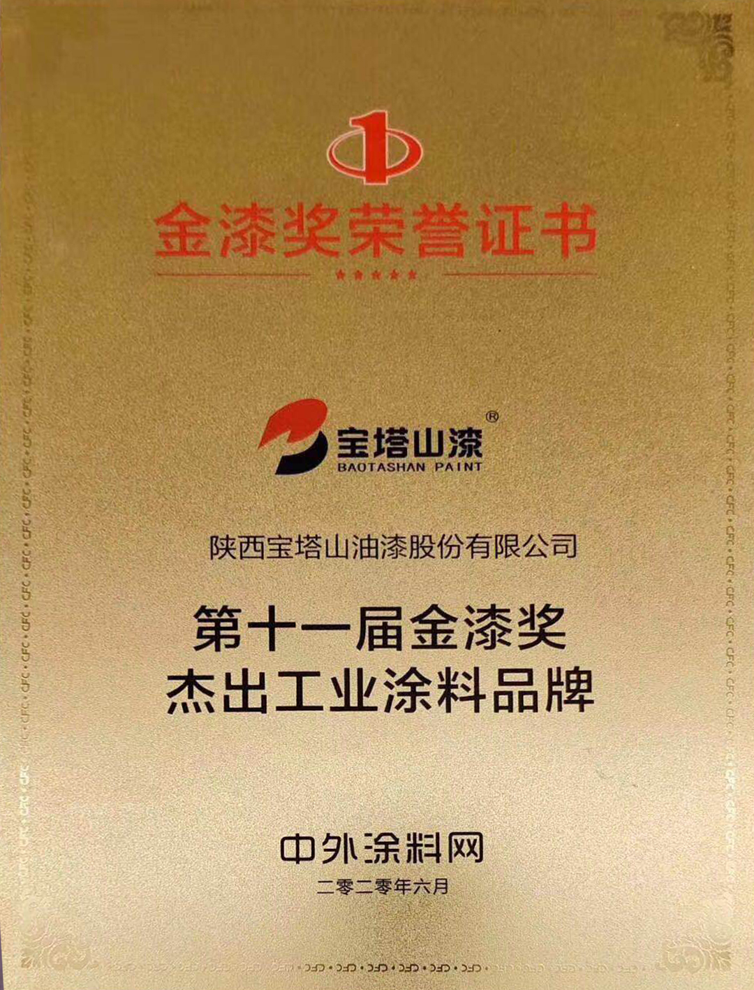2020年6月,寶塔山漆榮獲第十一屆金漆獎(jiǎng)“杰出工業(yè)涂料品牌” -