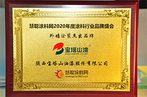 2020年7月,寶塔山漆榮獲第十六屆2020年度涂料行業(yè)影響力品牌頒獎(jiǎng)盛典活動(dòng)中榮獲”外墻涂裝杰出品牌“ -