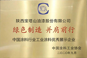 2020年9月,寶塔山漆獲評(píng)“中國(guó)涂料行業(yè)工業(yè)涂料優(yōu)秀展示企業(yè)” -