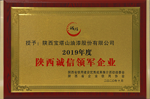 2020年10月,寶塔山漆獲評(píng)陜西省誠(chéng)信領(lǐng)軍企業(yè) -