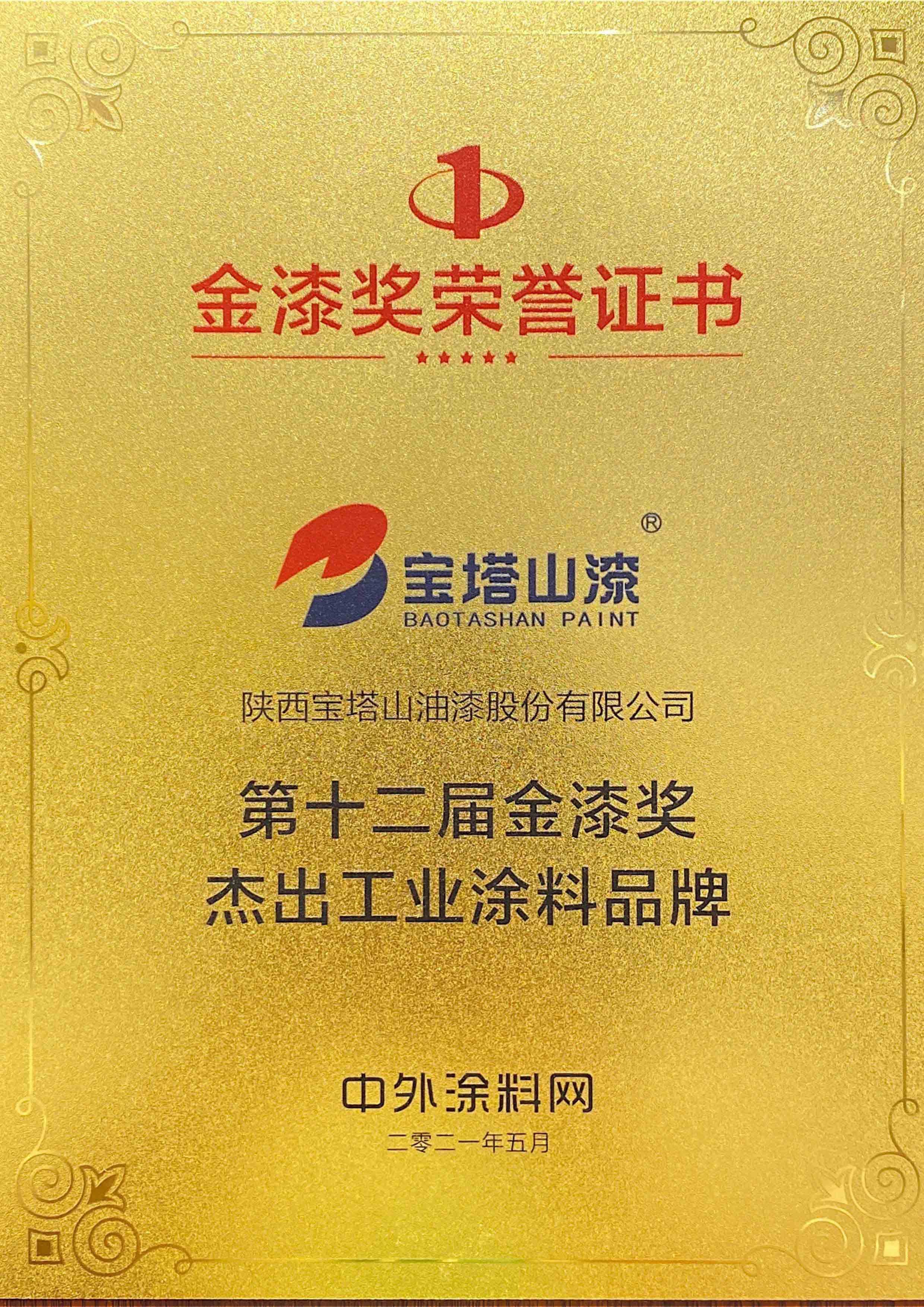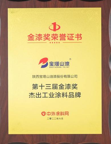 2022年6月,寶塔山漆榮獲第十三屆金漆獎(jiǎng)“杰出工業(yè)涂料品牌”。 -