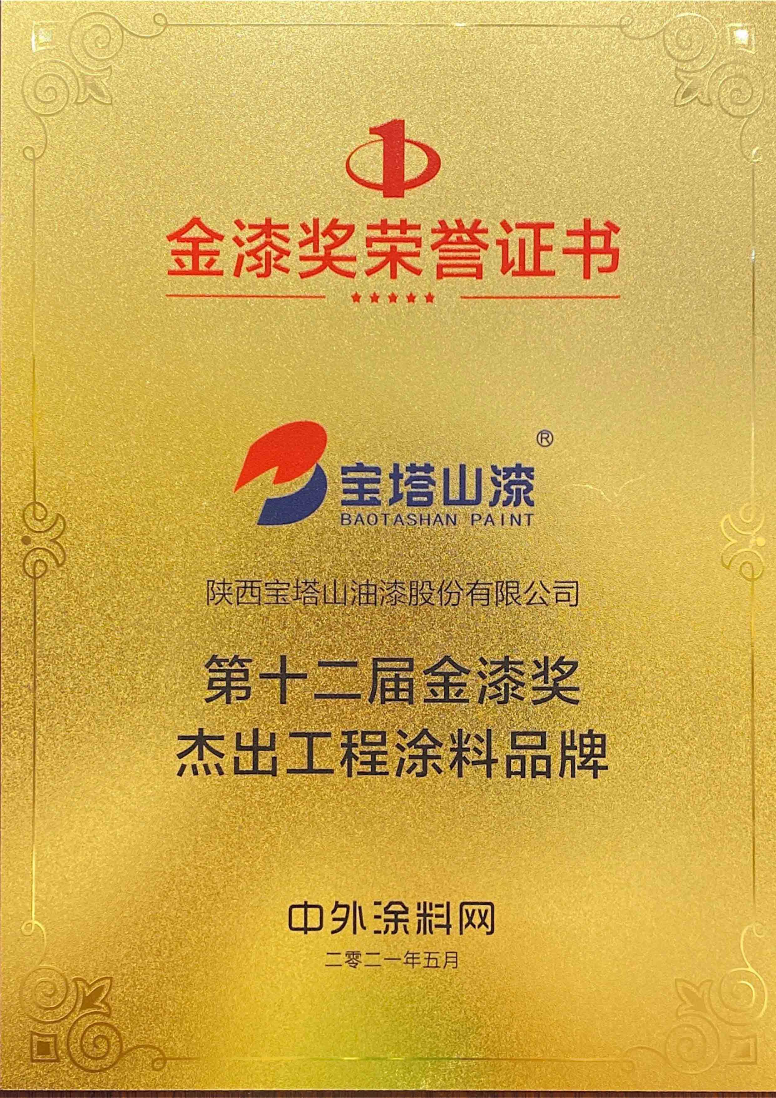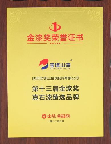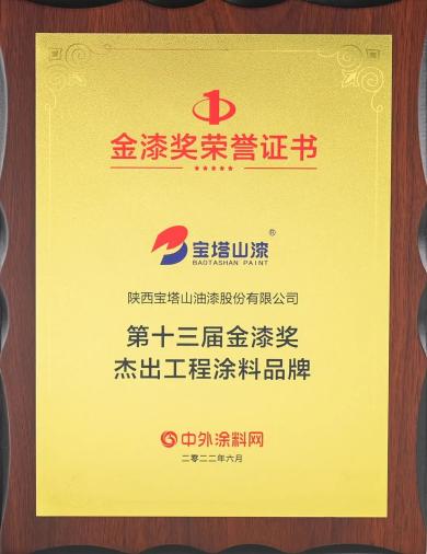 2022年6月,寶塔山漆榮獲第十三屆金漆獎(jiǎng)“杰出工程涂料品牌”。 -