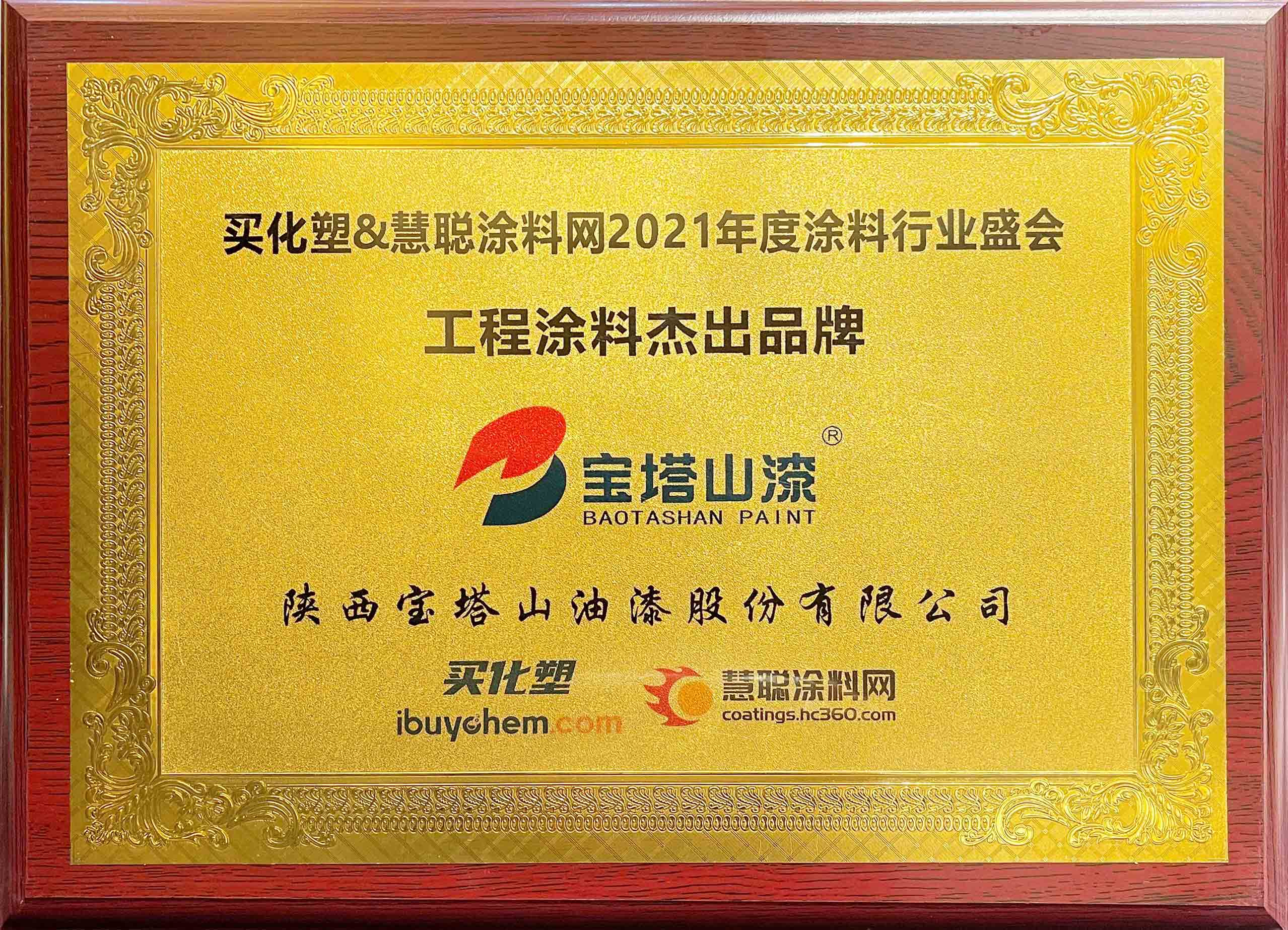 2021年6月26日,寶塔山漆榮獲2021 年度“工程涂料杰出品牌” -
