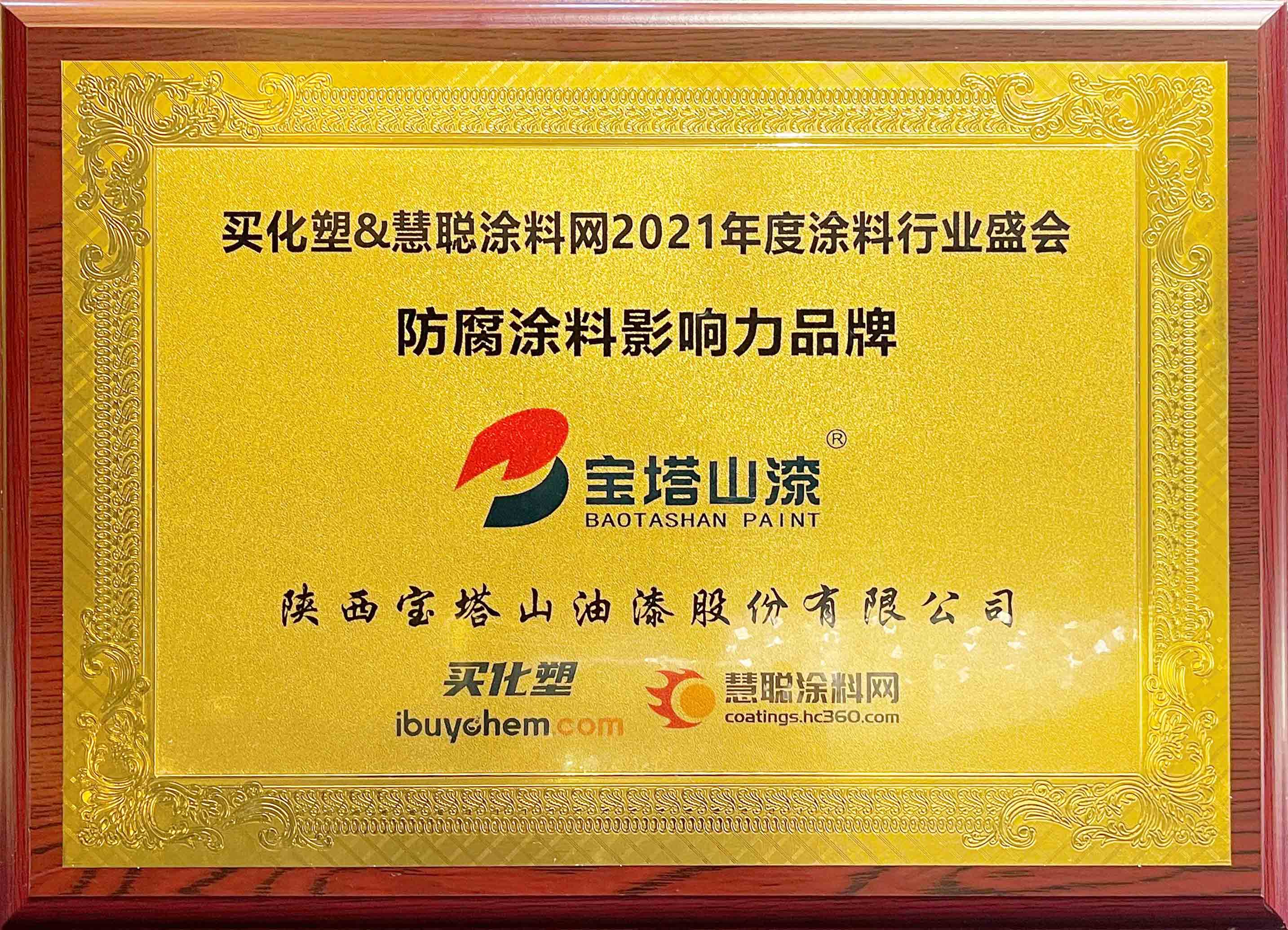 2021年6月26日,寶塔山漆榮獲2021 年度“防腐涂料影響力品牌” -