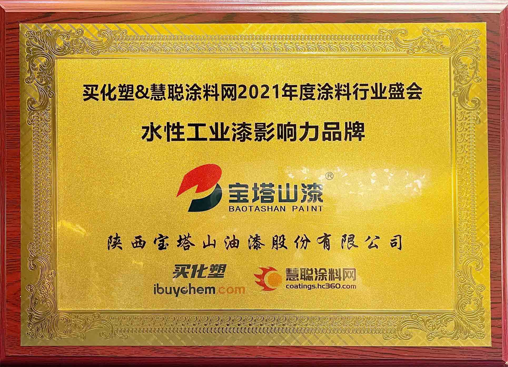 2021年6月26日,寶塔山漆榮獲2021 年度“水性工業(yè)漆影響力品牌 ” -