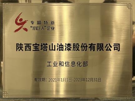 2021年,寶塔山漆入選國(guó)家級(jí)專精特新‘小巨人’企業(yè)名單(第一批第一年),晉級(jí)國(guó)家重點(diǎn)“小巨人”隊(duì)伍。 -