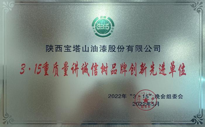 2022年5月,寶塔山漆榮獲“3·15重質(zhì)量講誠(chéng)信樹(shù)品牌創(chuàng)新先進(jìn)單位”。 -