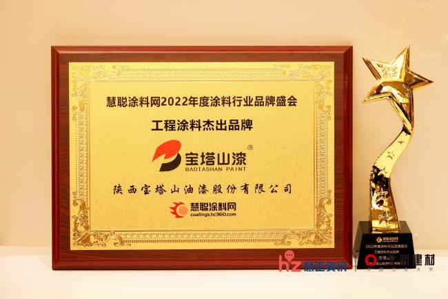 2022年7月,在2022年度涂料行業(yè)品牌盛會(huì)上,寶塔山漆榮獲“工程涂料杰出品牌”。 -