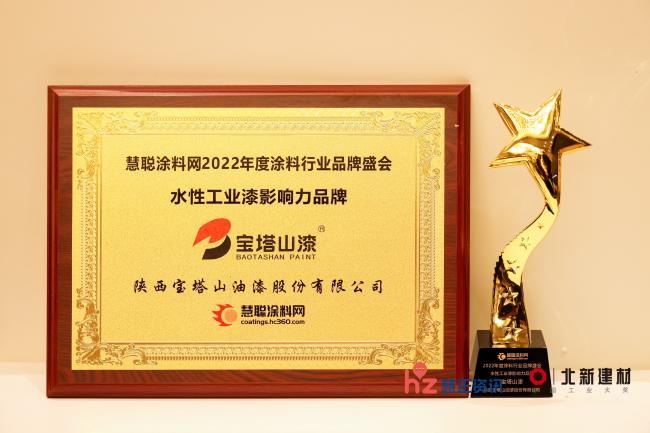 2022年7月,在2022年度涂料行業(yè)品牌盛會(huì)上,寶塔山漆榮獲“水性工業(yè)漆影響力品牌”。 -