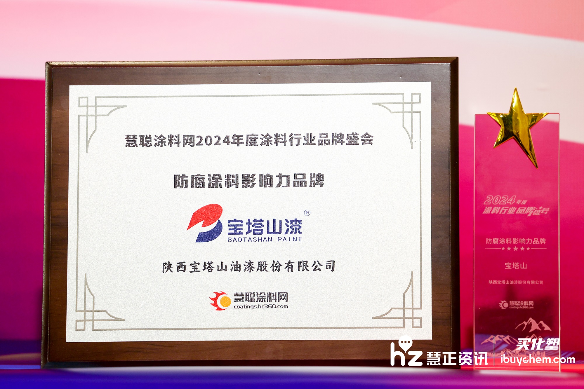 2024年,寶塔山漆在慧聰涂料網(wǎng)2024年度涂料行業(yè)品牌盛會(huì)上榮獲“腐涂料影響力品牌”。